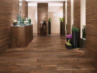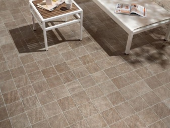 不同类型的木头和石头的各种美丽的仿制品可以用瓷器创造,但在这种情况下,与标准版本相比,精加工的成本会高得多。带有轻微浮雕的瓷片对人来说更加安全,它们不会滑倒。