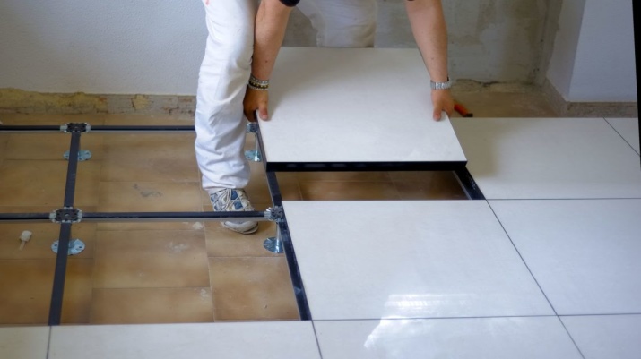 从房间的前角开始铺设瓷砖,首先将材料铺在干燥的表面上试一试,然后再铺设元件,预先用胶粘砂浆润滑基材。 为了确保瓷砖能够尽可能均匀地固定,你可以使用固定在地板本身的辅助金属铺设导轨。 也可以使用木制板条。