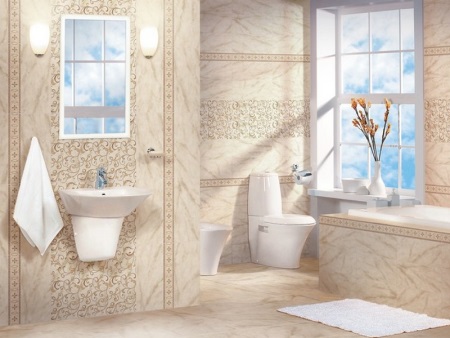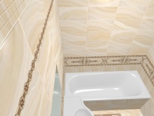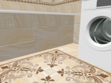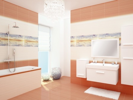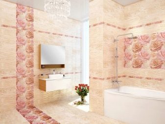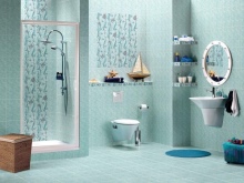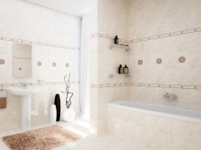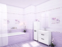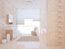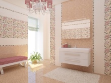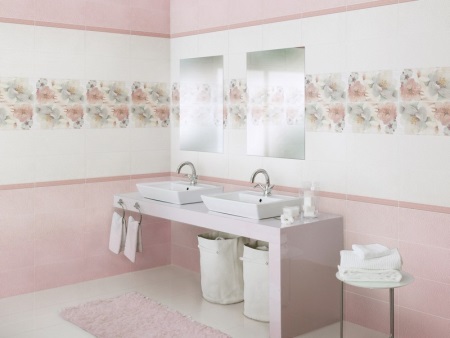 墙砖的主要颜色有牛奶、米色、粉色和蓝色等几种色调,与地砖的粉色背景融为一体,非常漂亮。