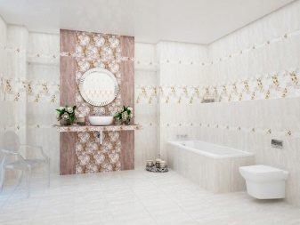 面板上的彩色奖章将强调整个装饰的风格。以类似于突出的羽毛的装饰物为形式的地板装饰,与大理石主题相结合,会给周围的风格带来一种创造性的感觉。