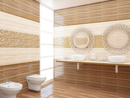 该系列有完整的墙面和地面陶瓷,并辅以装饰和边框。
