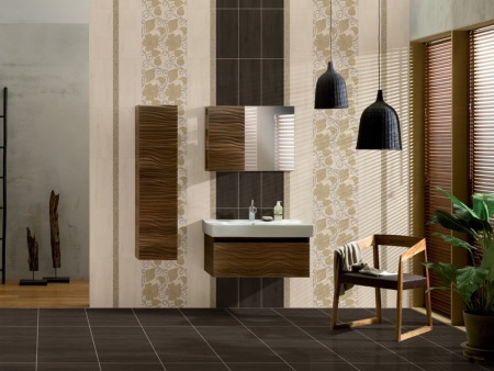 该陶瓷系列有棕色和浅棕色两种色调。该系列包括地面和墙面陶瓷,以及装饰品和边框。