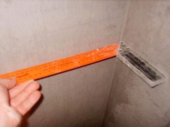 - 放置砂浆应借助于铅垂条,距离不超过150厘米。他们将帮助你更仔细地平整瓷砖底座。
